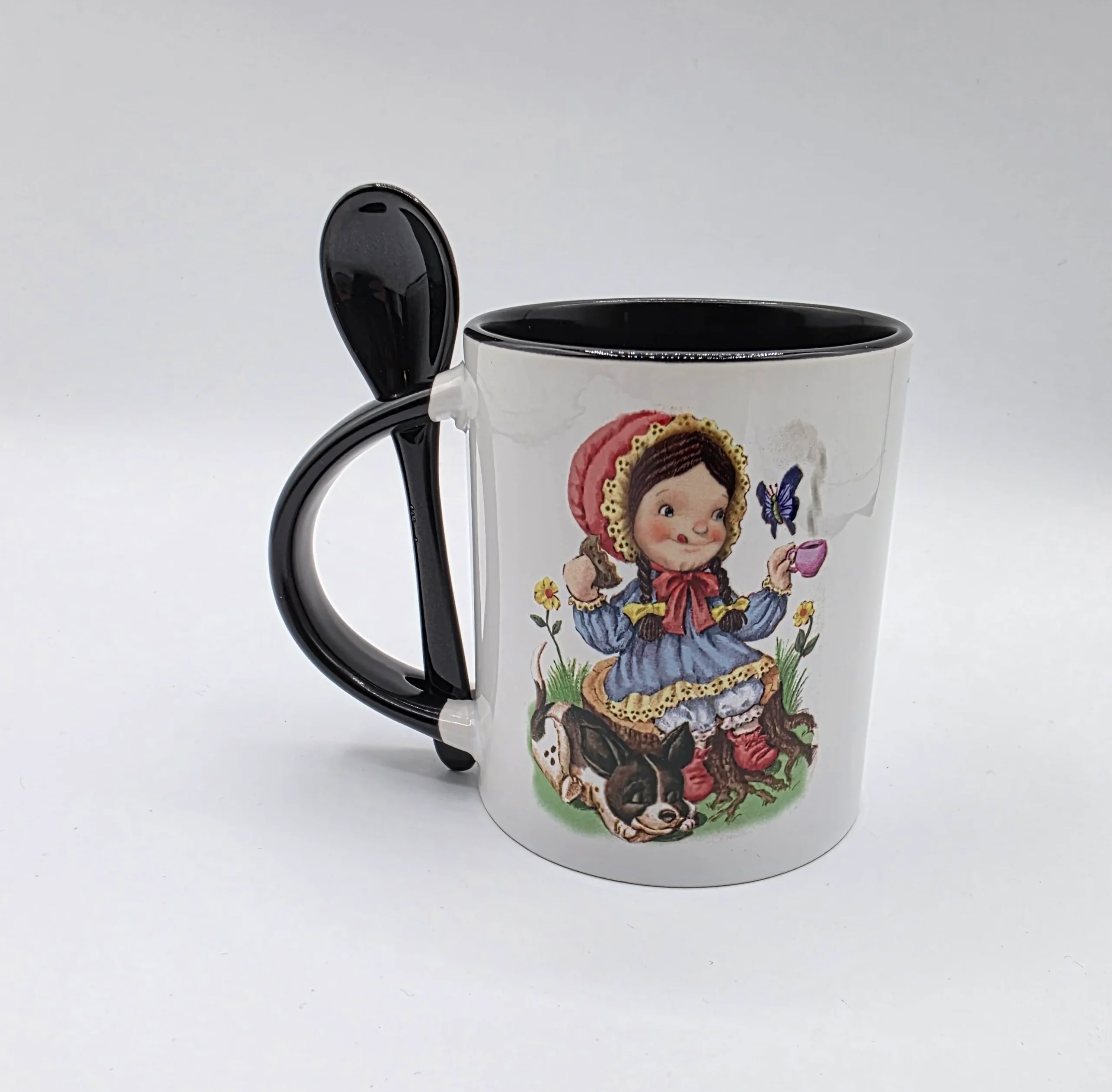 Pioneer Polly enjoys her tea and a Welsh cake while her faithful friend Ollie naps at her feet. The opposite side shows the Theme name “Tea is Life’s delight”. The latest offering in the collaborative series between Orlando de la Paz and Sidney Greenbush. 11 fluid oz stoneware mug with matching spoon. BPA free.Non-toxic (Diameters are 8.5 cm/3.34 inch, Height 9.6 cm/3.77 inches, Length 12.5 cm/4.92 inches)