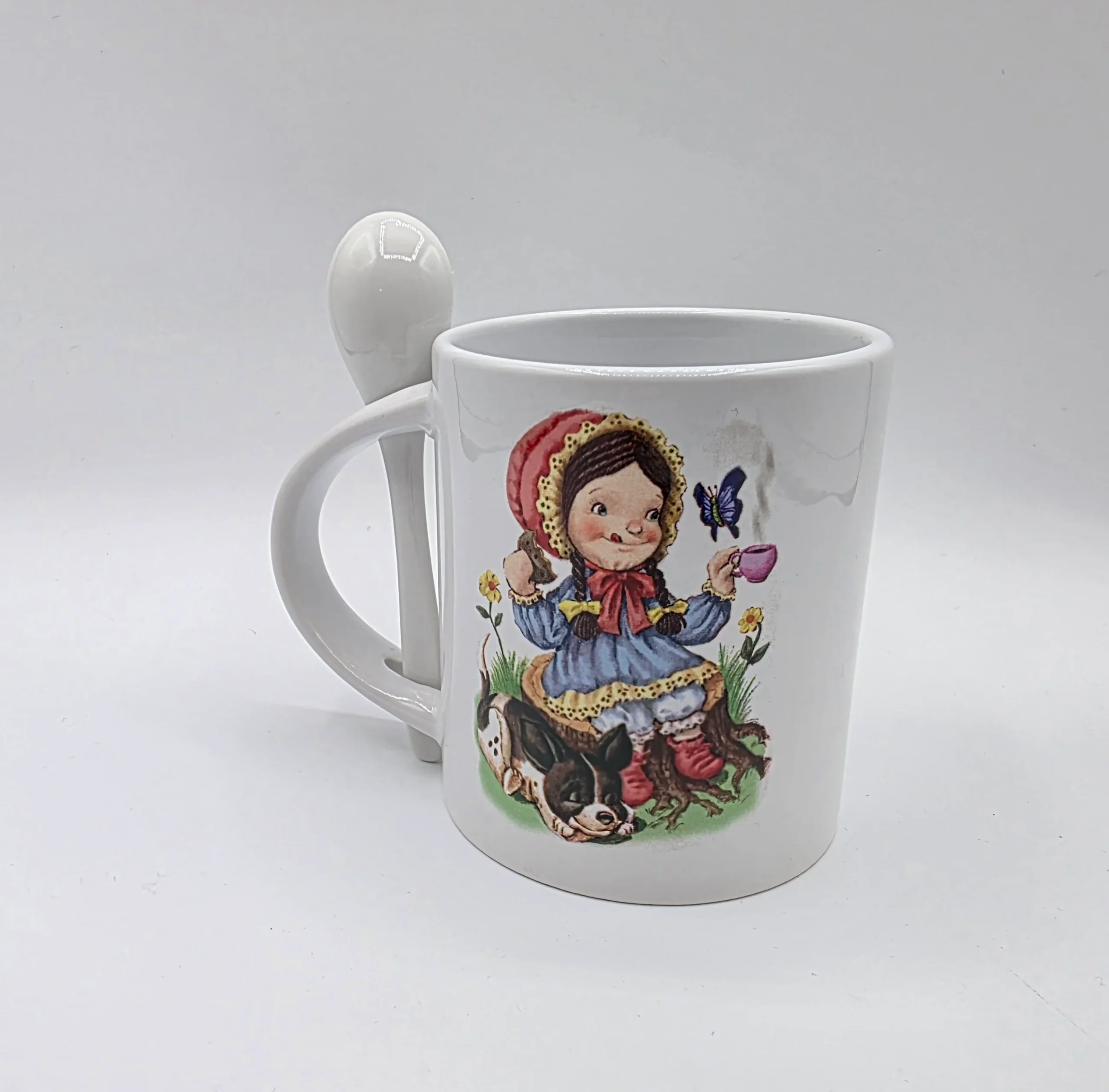 Pioneer Polly enjoys her tea and a Welsh cake while her faithful friend Ollie naps at her feet. The opposite side shows the Theme name “Tea is Life’s delight”. The latest offering in the collaborative series between Orlando de la Paz and Sidney Greenbush. 11 fluid oz stoneware mug with matching spoon. BPA free.Non-toxic (Diameters are 8.5 cm/3.34 inch, Height 9.6 cm/3.77 inches, Length 12.5 cm/4.92 inches)